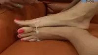In this captivating adult film, the focus is on a unique and explicit foot fetish that involves semen dripping from the womans toes.The scene opens with a wellhung man, whose identity will be unimportant in our description, standing before an equally aroused woman.She is completely naked, her body exquisitely shaped and toned, with shaved pussy lips peeking out from beneath her knees, eagerly anticipating whats to come.Her feet, adorned only by a pair of thin white ankle socks, are barefoot and smooth as they stand at the ready for the main event.The man begins to caress her soles with his hands, lingering on her heel, instep, and balls of her feet.He then places his lips gently upon her foots delicate arch, giving it a tender yet sensual kiss.The woman, meanwhile, cannot contain herself any longer and wraps her lips around his penis, her tongue snaking around his shaft as she starts to suck him off.As the intensity builds within both lovers, the man shifts his focus from the womans foot back onto his own cock, eagerly anticipating the main event.He raises her other foot towards his mouth and takes it in his hand, spreading her toes wide open.As he begins to suck her toes with his spitdripping lips, he feels a wave of pleasure building within him as he gazes up at the sight before him.The woman is equally engaged, her cunt becoming more and more engorged, aching to be fucked by this man so passionate about his fetish for her feet.Just as hes reaching the brink of ecstasy, the man thrusts forward with all his might into the woman, feeling her tight, wet pussy clasp at his dick with each powerful stroke.Simultaneously, the woman takes his cock deeper and deeper into her mouth, sucking on every inch.As their orgasms build to a crescendo, the semen spurts from the mans tip, trickling down onto the womans big toe, then sliding over each of her splayed digits.The visual sight combined with the intense physical pleasure makes the couple shudder and writhe in blissful unison as they cum together.This explicit porn scene is filled with passion, desire, and a strong emphasis on their shared fetish for feet.It pushes the boundaries of typical sex scenes by focusing on the unique pleasure that the womans semendripping toes provide.This intense exploration into the foot fetish world showcases how lovemaking can be tailored to fulfill each partners most unusual fantasies and desires, making for a thrilling adult film that will leave viewers satisfied and craving more.